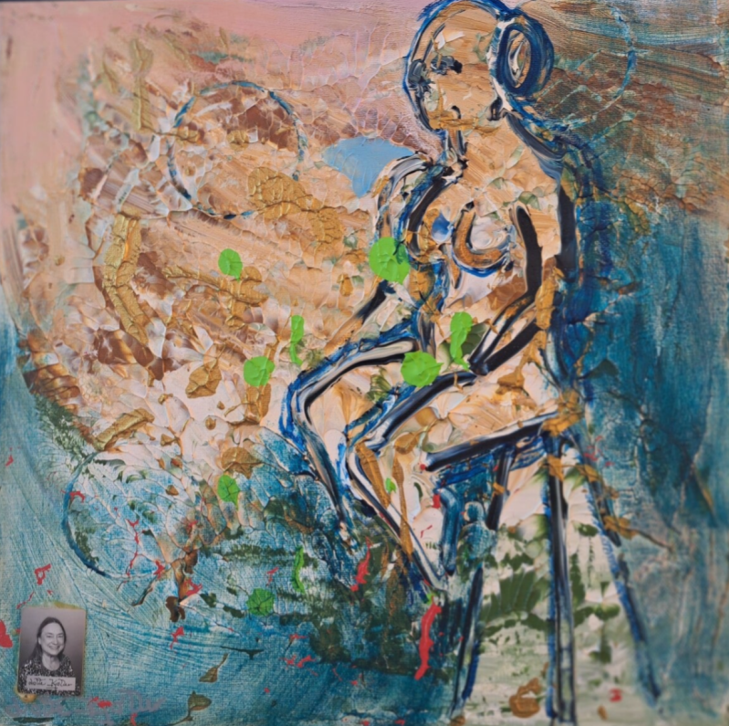 TV: Brændende kærlighed. TH: Pink. Acryl på lærred og foto. 60x80 cm. Lotte Kjøllers maleri er udstillet i Forårs-udstillingen i Helsingør Kunstforening